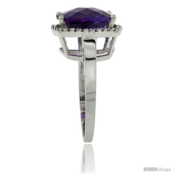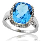 10k White Gold Diamond Swiss Blue Topaz Ring 5.17 ct Checkerboard Cut Cushion 12x10 mm, 1/2 in wide