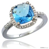 10K White Gold Natural Swiss Blue Topaz Ring Cushion-cut 8x8 Stone Diamond Accent