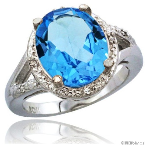 10K White Gold Natural Swiss Blue Topaz Ring Oval 12x10 Stone Diamond Accent