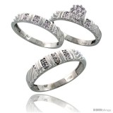 10k White Gold Diamond Trio Engagement Wedding Ring 3-piece Set for Him & Her 5 mm & 3.5 mm wide 0.14 cttw B -Style Ljw017w3