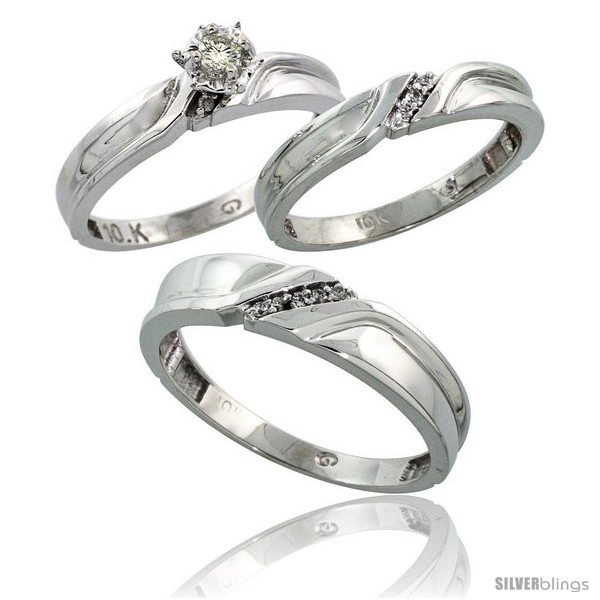 10k White Gold Diamond Trio Wedding Ring Set His 5mm & Hers 3.5mm