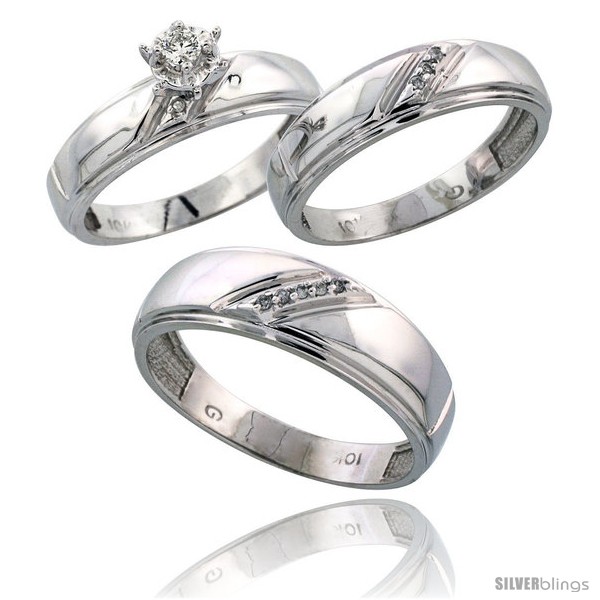 10k White Gold Diamond Trio Wedding Ring Set His 7mm & Hers 5.5mm -Style Ljw102w3