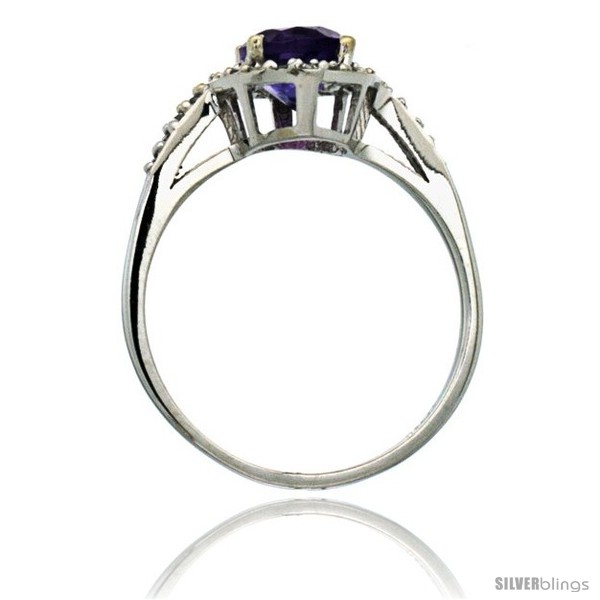 10k White Gold Diamond Whisky Quartz Ring Oval Stone 8x6 mm 1.17 ct 3/8 in wide