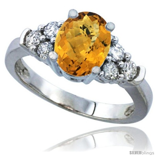10K White Gold Natural Whisky Quartz Ring Oval 9x7 Stone Diamond Accent