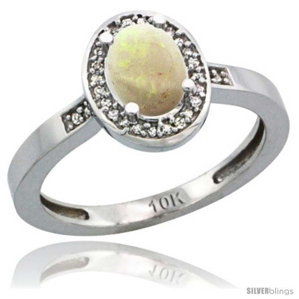 10k White Gold Diamond Opal Ring 1 ct 7x5 Stone 1/2 in wide