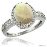 10k White Gold Diamond Opal Ring Oval Stone 10x8 mm 2.4 ct 1/2 in wide