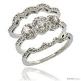 10k White Gold 3-Piece Diamond Engagement Ring Set 0.585 cttw Brilliant Cut Diamonds 3/8 in wide