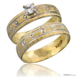 10k Gold Ladies' 2-Piece 0.10 Carat Diamond Engagement Ring Set Diamond-cut Pattern Rhodium Accent, 3/16 in -Style 10y505e2