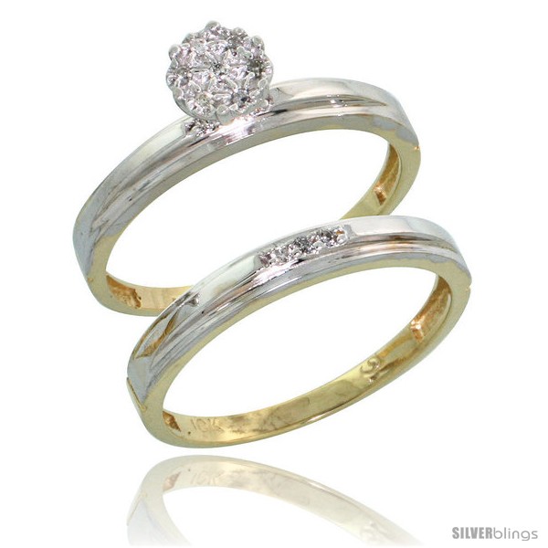 10k Yellow Gold Diamond Engagement Rings Set 2-Piece 0.07 cttw Brilliant Cut, 1/8 in wide -Style Ljy006e2