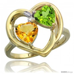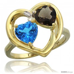 10k Yellow Gold 2-Stone Heart Ring 6mm Natural Swiss Blue & Swiss Blue
