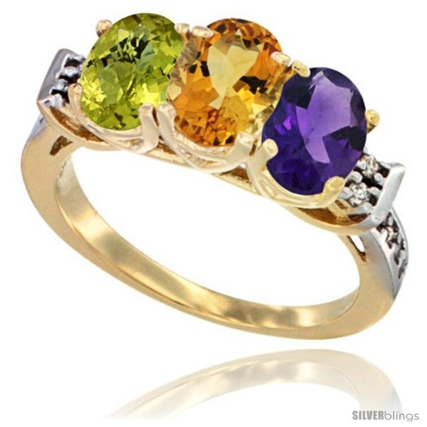 10K Yellow Gold Natural Amethyst, Citrine & Lemon Quartz Ring 3-Stone Oval 7x5 mm Diamond Accent