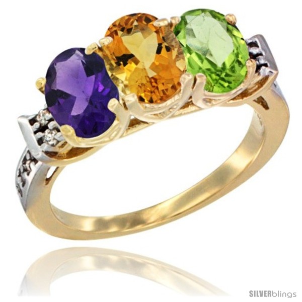10K Yellow Gold Natural Amethyst, Citrine & Peridot Ring 3-Stone Oval 7x5 mm Diamond Accent