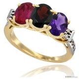 10K Yellow Gold Natural Amethyst, Garnet & Ruby Ring 3-Stone Oval 7x5 mm Diamond Accent