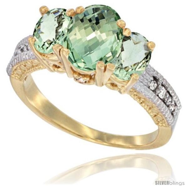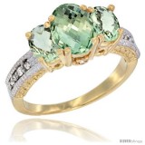 10K Yellow Gold Ladies Oval Natural Green Amethyst 3-Stone Ring Diamond Accent