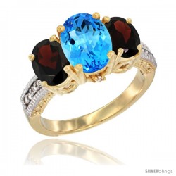 10k Yellow Gold 3-Stone Swiss Blue Topaz Rings -