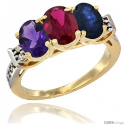 10k Yellow Gold 3-Stone Amethyst Rings -