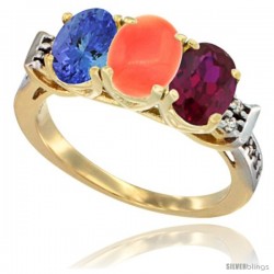 10k Yellow Gold 3-Stone Coral Rings -