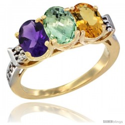 10k Yellow Gold 3-Stone Green Amethyst Rings -