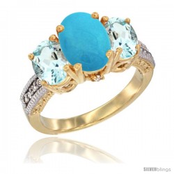 10k Yellow Gold 3-Stone Turquoise Rings -