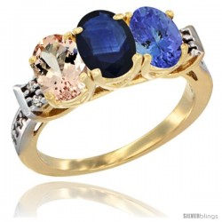 10k Yellow Gold 3-Stone Blue Sapphire Rings -