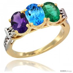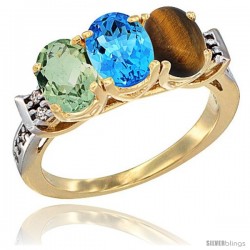 10K Yellow Gold Ladies 3-Stone Oval Natural Swiss Blue Topaz Ring Diamond Accent