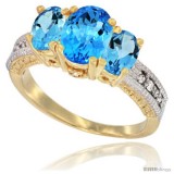 10K Yellow Gold Ladies Oval Natural Swiss Blue Topaz 3-Stone Ring Diamond Accent