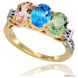 10K Yellow Gold Natural Green Amethyst, Swiss Blue Topaz & Morganite Ring 3-Stone Oval 7x5 mm Diamond Accent