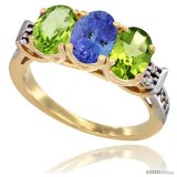 10K Yellow Gold Natural Tanzanite & Peridot Sides Ring 3-Stone Oval 7x5 mm Diamond Accent