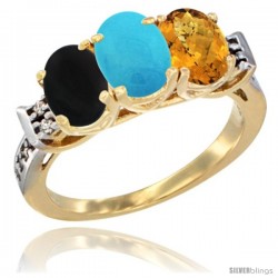 10K Yellow Gold Natural Black Onyx, Turquoise & Whisky Quartz Ring 3-Stone Oval 7x5 mm Diamond Accent