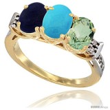 10K Yellow Gold Natural Green Amethyst, Turquoise & Lapis Ring 3-Stone Oval 7x5 mm Diamond Accent