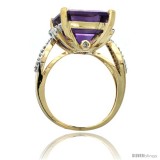 10k Yellow Gold Diamond Amethyst Ring 12 ct Emerald Shape 16x12 Stone 3/4 in wide