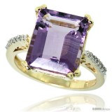 10k Yellow Gold Diamond Amethyst Ring 5.83 ct Emerald Shape 12x10 Stone 1/2 in wide