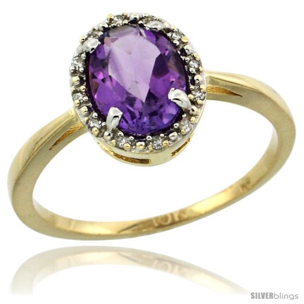 10k Yellow Gold Diamond Halo Amethyst Ring 1.2 ct Oval Stone 8x6 mm, 1/2 in wide