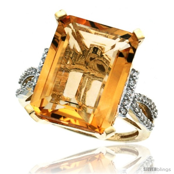 10k Yellow Gold Diamond Citrine Ring 12 ct Emerald Shape 16x12 Stone 3/4 in wide