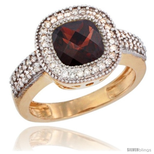 10k Yellow Gold Ladies Natural Garnet Ring Cushion-cut 3.5 ct. 7x7 Stone