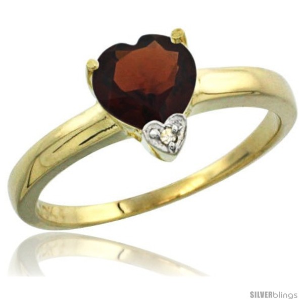 10K Yellow Gold Natural Garnet Heart-shape 7x7 Stone Diamond Accent