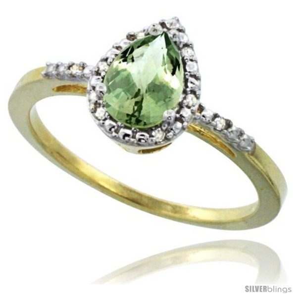 10k Yellow Gold Diamond Green-Amethyst Ring 0.59 ct Tear Drop 7x5 Stone 3/8 in wide