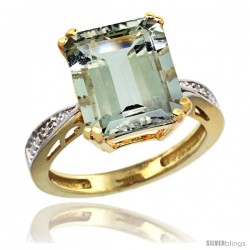 10k Yellow Gold Diamond Green-Amethyst Ring 2.08 ct Checkerboard Cushion 8mm Stone 1/2.08 in wide