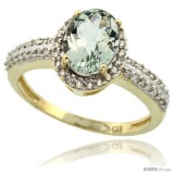 10k Yellow Gold Diamond Halo Green Amethyst Ring 1.2 ct Oval Stone 8x6 mm, 3/8 in wide