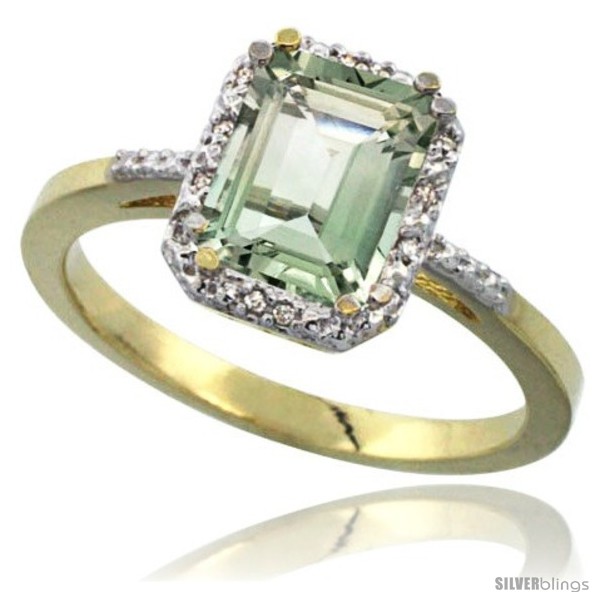 10k Yellow Gold Ladies Natural Green Amethyst Ring Emerald-shape 8x6 Stone