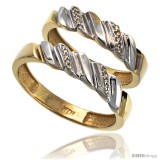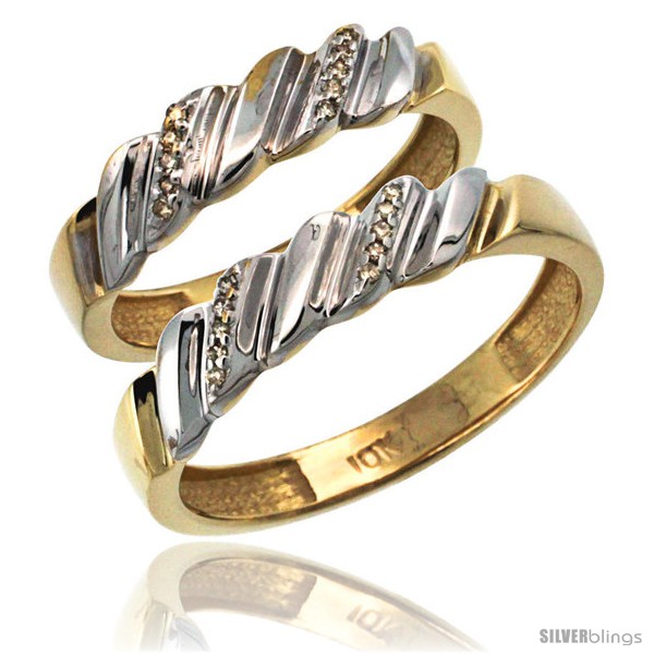 10k Gold 2-Pc His (5mm) & Hers (5mm) Diamond Wedding Ring Band Set w/ 0.126 Carat Brilliant Cut Diamonds