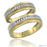 10k Gold 2-Piece His (6.5mm) & Hers (6mm) Diamond Wedding Ring Band Set w/ 0.60 Carat Brilliant Cut Diamonds