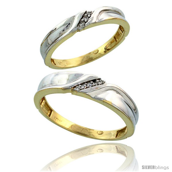 10k Yellow Gold Diamond 2 Piece Wedding Ring Set His 5mm & Hers 3.5mm
