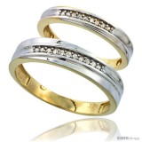 10k Yellow Gold Diamond Wedding Rings 2-Piece set for him 5 mm & Her 3 mm 0.06 cttw Brilliant Cut