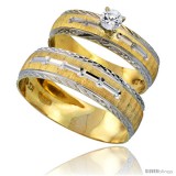 10k Gold 2-Piece Diamond Engagement Ring & Wedding Band Set his & Hers 0.10 cttw Rhodium Accent Diamond-cut Pattern, 4.5mm