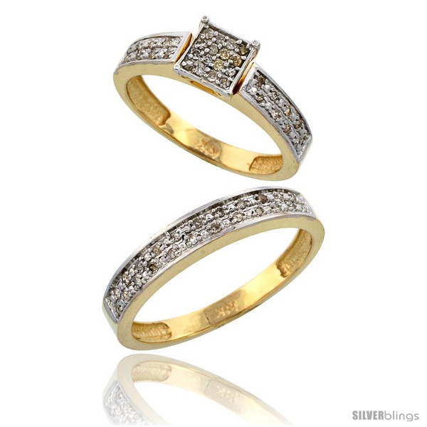 10k Gold 2-Piece Diamond Ring Set ( Engagement Ring & Man's Wedding Band ), w/ 0.24 Carat Brilliant Cut Diamonds, 5/32 in