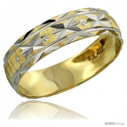 10k Gold Ladies' Wedding Band Ring Diamond-cut Pattern Rhodium Accent, 3/16 in. (4.5mm) wide -Style 10y506lb