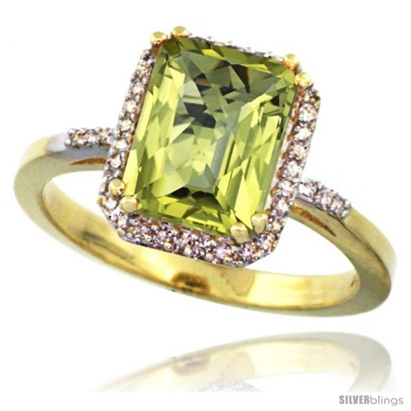 10k Yellow Gold Diamond Lemon Quartz Ring 2.53 ct Emerald Shape 9x7 mm, 1/2 in wide