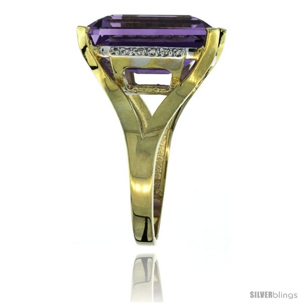 10k Yellow Gold Diamond London Blue Topaz Ring 12 ct Emerald Cut 16x12 stone 3/4 in wide
