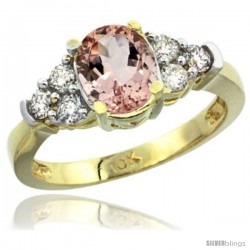 10K Yellow Gold Natural Morganite Ring Diamond Accent, Cushion-cut 9x9 Stone Diamond Accent